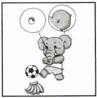 One possible version:Look at Mr Elephant. He is big. His ears are big. His eyes are big. He can play football. He would like some bananas.