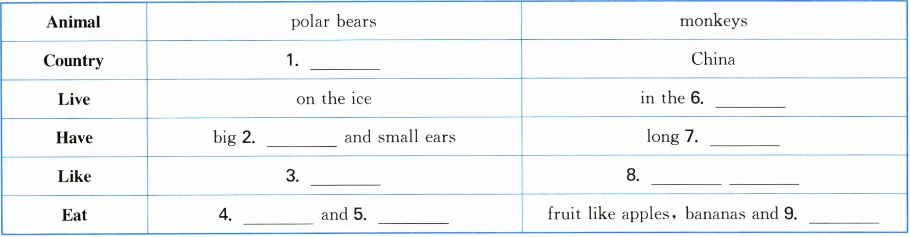 九、1. Canada 2. bodies 3. swimming 4. birds5. fish 6. forest 7. arms 8. climbing trees9. pears