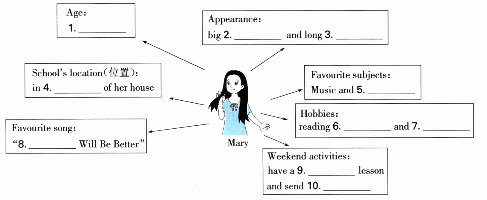 十、新考法 听录音,根据所听短文,完成思维导图。(每小题2分,共20分)