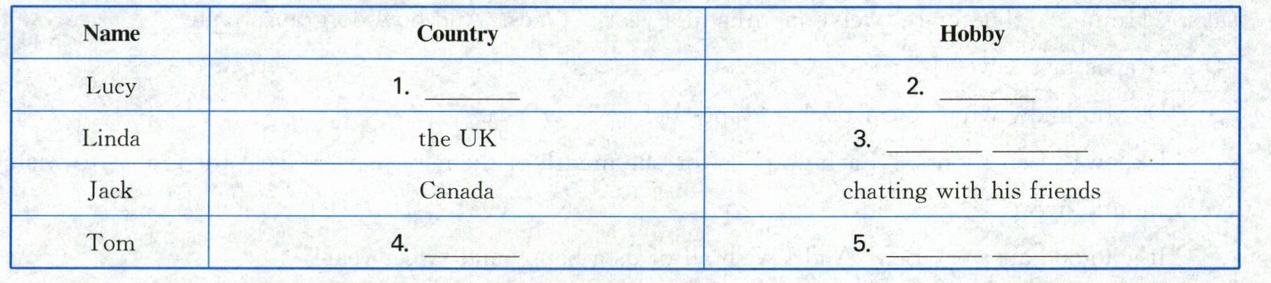 五、新考法 听录音,根据所听短文,完成表格。(每小题2分,共10分)