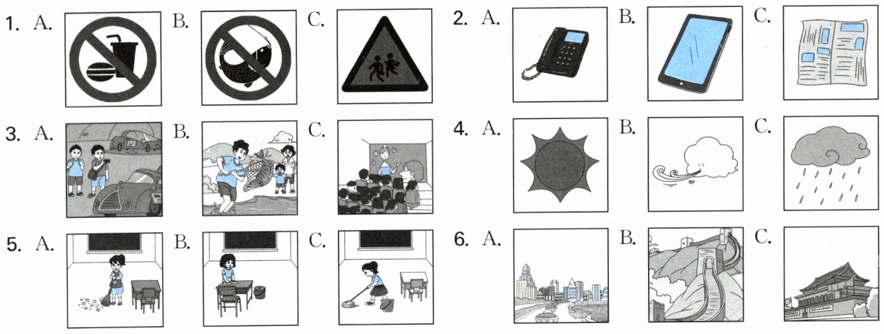) 6. A. It is sunny. B. It was windy. C. It often rains in spring.