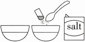 2:Add 10 tablespoons of salt to one bowl,mix the salt and water until the salt dissolves(溶解),and then add several drops of colouring.