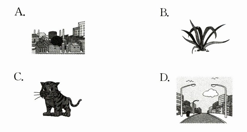 3. D 图片理解题。这次比赛是要求参赛者画出自己心中未来的城市,D 选项符合要求。