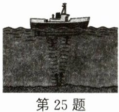 25.(10分)(2024·泰州兴化期中)声音在海水中的传播速度是1530m/s,为了开辟新航道,某科学探测船装有回声探测仪器,探测水下有无暗礁,如图所示,探测船发出的声音信号0.8s后被探测仪器接收。