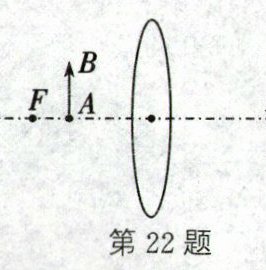 22. (2分)请在图中画出物体AB的像A'B'的大概位置。注:要能正确反映像的大小、正倒和虚实,但不需要画光线图。