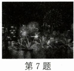 7.(2024·宿迁沭阳期末)2024年12月25日晚上9时,在澳门旅游塔对出海面举行了"庆祝澳门特别行政区成立25周年烟花表演"(如图),向国家和澳门特别行政区致以美好的祝愿,为居民和旅客送上喜悦及祝福。烟花绚丽多彩,现场气氛热烈,下列对此场景说法错误的是 (