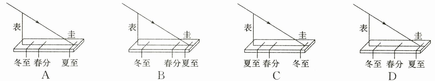(1)铅垂线 (2)冬至 (3)C (4)D (5)适当增加表的长度 解析:
