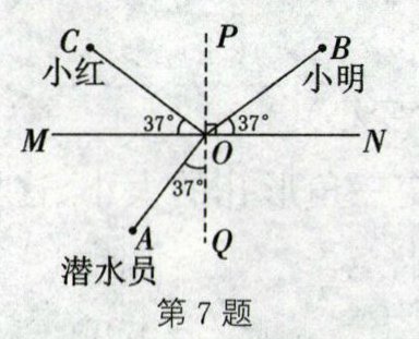 7. (2024·常州武进期中)如图所示,MN为水面,PQ为法线,水面下A处有潜水员,水面上方B、C处分别有小明和小红。他们分别通过水面观察对方的像,以下说法正确的是 (