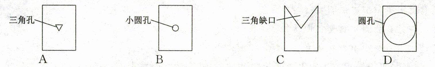 的原理制作了一个寻星装置,将其安装在望远镜套筒上后,借助挡板能快捷寻找目标(如图乙所示),并将目标锁定在望远镜视野中,下列设计的各挡板中最适合的是____C