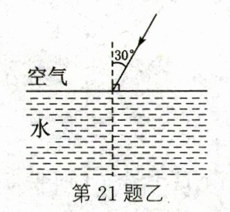 (2) (2024·连云港三模)如图乙所示,一束光斜射入水中,请画出它的反射光线和折射光线并标出反射角的大小。