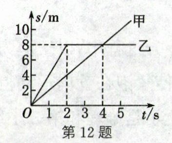 12.(2024·苏州工业园区模拟)甲、乙两物体,同时从同一地点沿直线向同一方向运动,它们的s-t图像如图所示。下列说法正确的是(