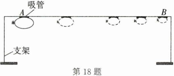 18.(2024·盐城东台期末)将气球吹大,用夹子把口封紧,剪取一段10cm长的吸管,用胶带把它固定在气球上。将一根长线穿过吸管,水平拉直后固定在两侧支架上。把气球封口的夹子松开,气球向右运动。如图所示是气球运动时每隔0.5s的频闪照片。以吸管为参照物,支架是