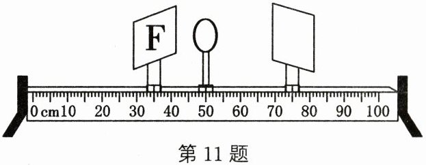 11. (2024·无锡锡山模拟)小明用如图所示装置探究凸透镜成像规律,光源用LED灯“F”,此时光屏上恰好成清晰的像。下列说法正确的是 (
