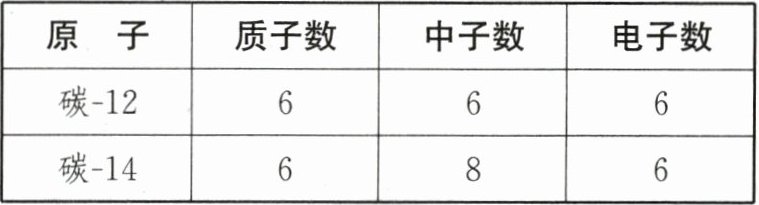 ②表2为碳-12原子、碳-14原子的构成:按照道尔顿区分不同元素的标准,表2中的原子对应2种元素。按照现代化学的元素概念,表2中的原子属于1种元素,理由是