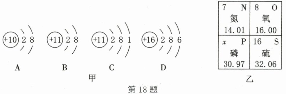 18. (7分)观察图甲、乙所示粒子的结构示意图和元素周期表(部分),回答下列问题。