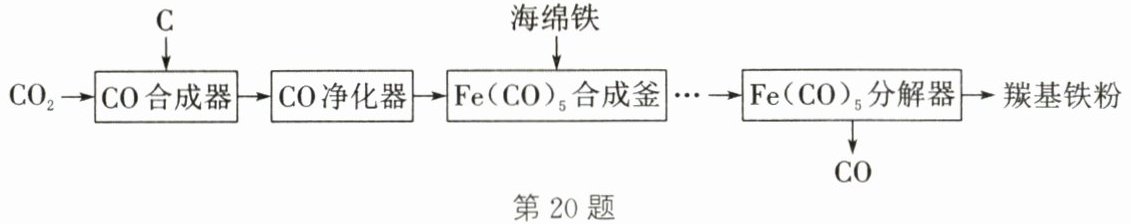 20. (6 分)(2025·苏州姑苏期末)用$Fe(CO)_{5}$分解制得的铁粉称为“羰基铁粉”,在国防军工领域有重要应用。以海绵铁为原料制备羰基铁粉的流程如下。
