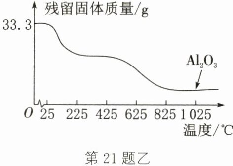 (填“物理”或“化学”)变化。Ⅱ. 硫酸铝晶体[$Al_{2}(SO_{4})_{3}\cdot 18H_{2}O$,相对分子质量为 666]也可以分解得到活性$Al_{2}O_{3}$。将 33.3g 硫酸铝晶体放在坩埚内加热,固体质量与成分随温度变化的曲线如图乙。已知$425^{\circ }C$前减少的均为结晶水的质量。