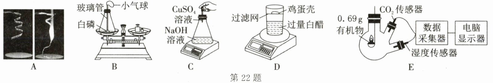 22. (2025·西安雁塔期中)质量守恒定律是自然界最普遍、最重要的基本定律之一。某化学课外小组同学用如图所示实验探究质量守恒定律。