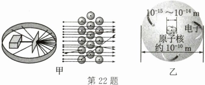 (2)卢瑟福用α粒子轰击金箔后产生散射现象(如图甲),在分析实验结果的基础上,他提出了原子结构模型(如图乙)。卢瑟福这一研究是