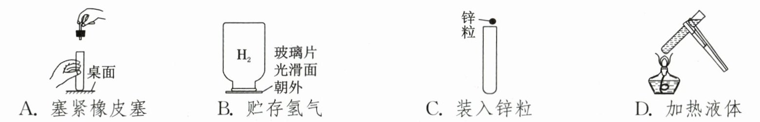 D 解析:不同种的分子化学性质不同,H₂O和H₂O₂化学性质不同,是因为它们分子的构成不同,A正确。由一种元素组成的纯净物是单质,由两种或两种以上元素组成的纯净物是化合物,根据组成元素的异同,可将纯净物分为单质和化合物,B正确。化学变化在生成新物质的同时,也会伴随着能量的变化,C正确。气体可以压缩在钢瓶中储存,是因为分子之间的空隙变小,不是数目减少,D错误。