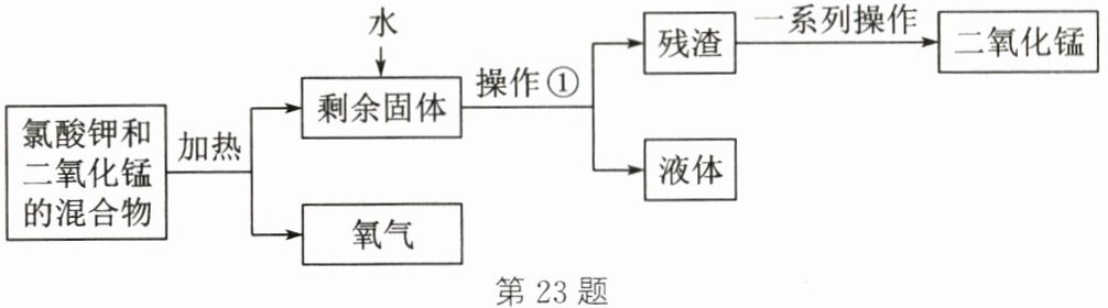 23.(10分)某化学小组的同学加热氯酸钾与二氧化锰的混合物制取氧气,同时得到氯化钾,并从反应剩余物中回收二氧化锰,设计模拟工艺流程如图所示。分析流程,回答下列问题: