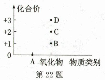 22.(5分)价类二维图表示物质中某种元素的化合价与物质类别之间的关系,如图所示的B、C、D三种物质均属于氧化物,除氧元素外另一种元素的化合价分别为+1、+2、+3,如B物质表示某+1价元素的氧化物。结合图示回答下列问题。