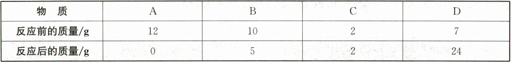 24.(4分)某同学在一次化学实验中,分别记录反应前后试管中A、B、C、D四种物质的质量,结果如表所示。回答下列问题: