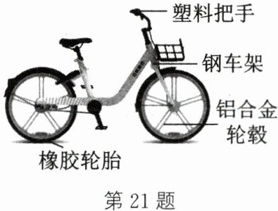 (1)为了方便出行,街面上出现了大量的"小黄车"(如图),这种共享单车所用的材料中属于金属材料的是