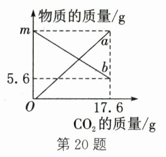 20.(2025·南京期末)将一氧化碳和铁的氧化物FeₓOᵧ置于密闭容器中,一定条件下充分反应。反应过程中容器内部分物质的质量变化如图所示,横坐标表示$CO_2$的质量,纵坐标既可以表示CO的质量,也可以表示Fe的质量。下列说法正确的是(
