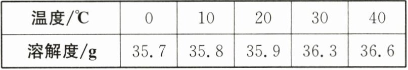 |溶解度/g|35.7|35.8|35.9|36.3|36.6|