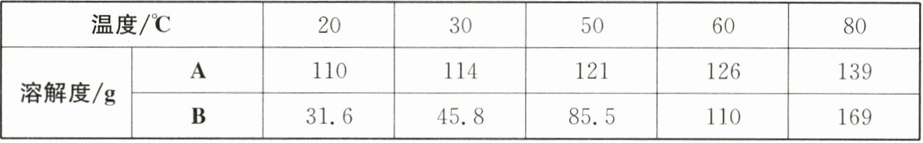 (2)30℃时,将50 g A和50 g B分别加入50 g水中,充分搅拌,可形成饱和溶液的物质为______。