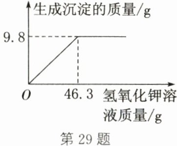 29. 小慧称取20 g某氯化铜样品放入烧杯中,加入50 g水使氯化铜完全溶解,逐滴加入一定溶质质量分数的氢氧化钾溶液,反应生成沉淀的质量与所加氢氧化钾溶液质量的关系如图所示[已知$:①CuCl_2+2KOH= 2KCl+Cu(OH)_2↓;② $氯化铜样品中所含杂质既不溶于水,也不参与反应]。试计算: