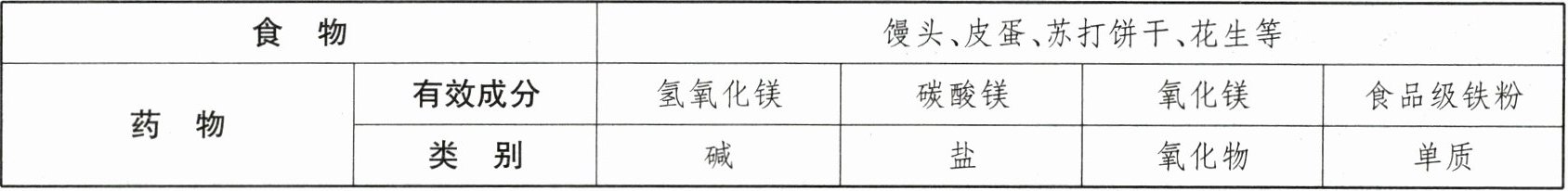 ,引起不适,应在医生的指导下换成表中的一种药物进行治疗,这种药物的有效成分可以是氢氧化镁(或氧化镁)