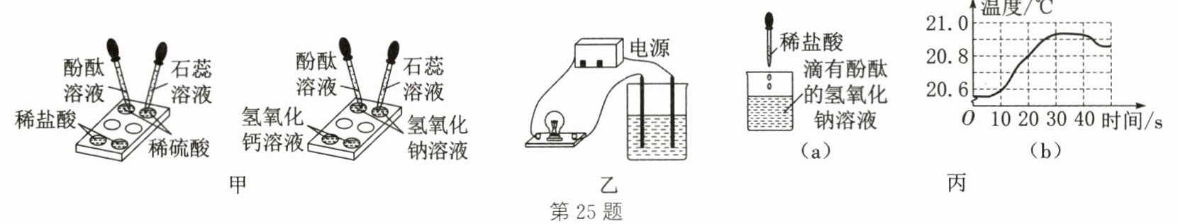 25. (8分)(2024·大连模拟)如图甲为某化学兴趣小组在白色点滴板上进行有关"酸和碱与指示剂作用"的探究实验。