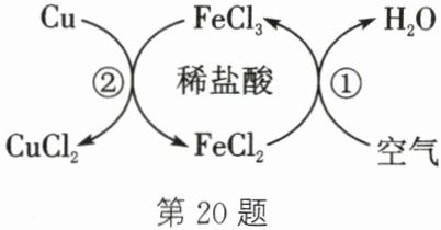 20.工业上常采用Cu与稀盐酸在持续通入$O_2$的条件下制取$CuCl_2,$其原理如图所示,下列说法正确的是 (
