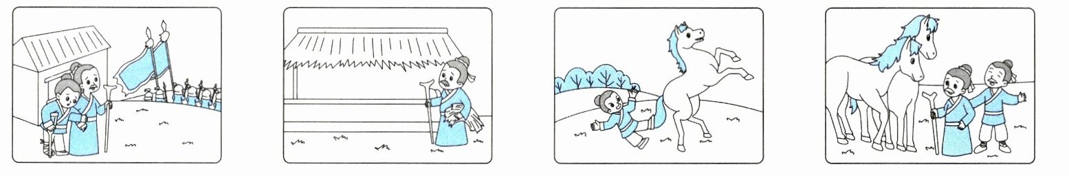 (一) 4 1 3 2 (二) Good things:Saiweng got another fine horse. His son did not have to serve in the army. Bad things:Saiweng lost a horse. His son hurt his leg. (三) Bad luck often brings good luck