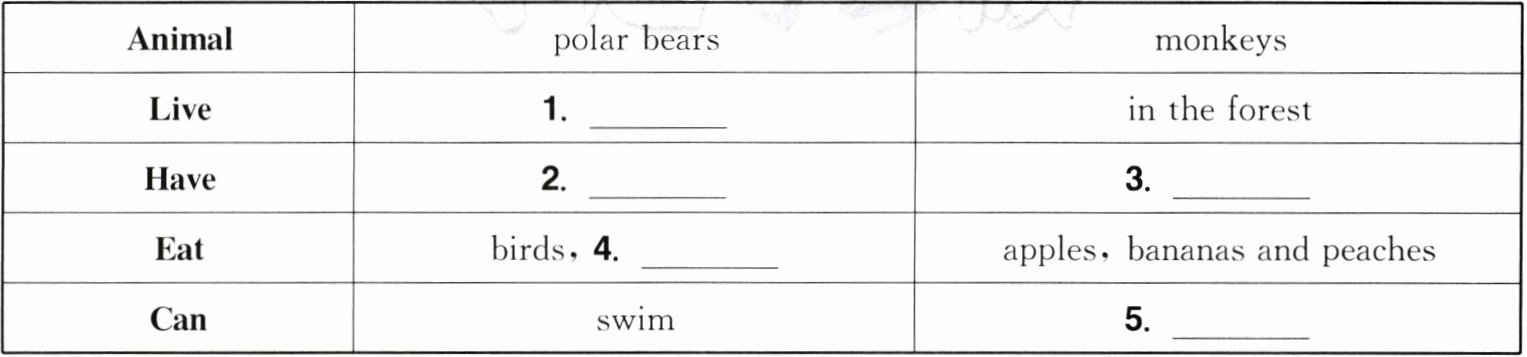 |Live|1. ______|in the forest|