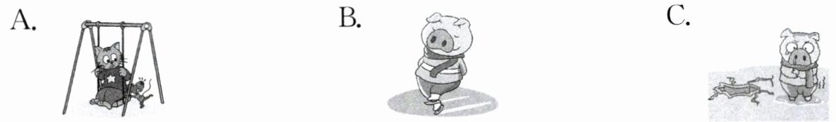 ( )3. A. Turkeys and pudding. B. A Christmas tree. C. Stockings.