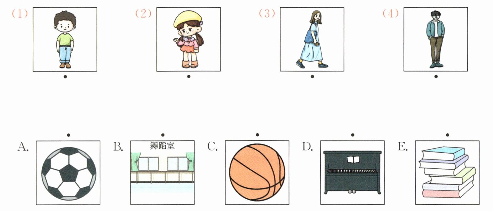 1. 听录音,根据所听对话,将人物与爱好连线。(听两遍)