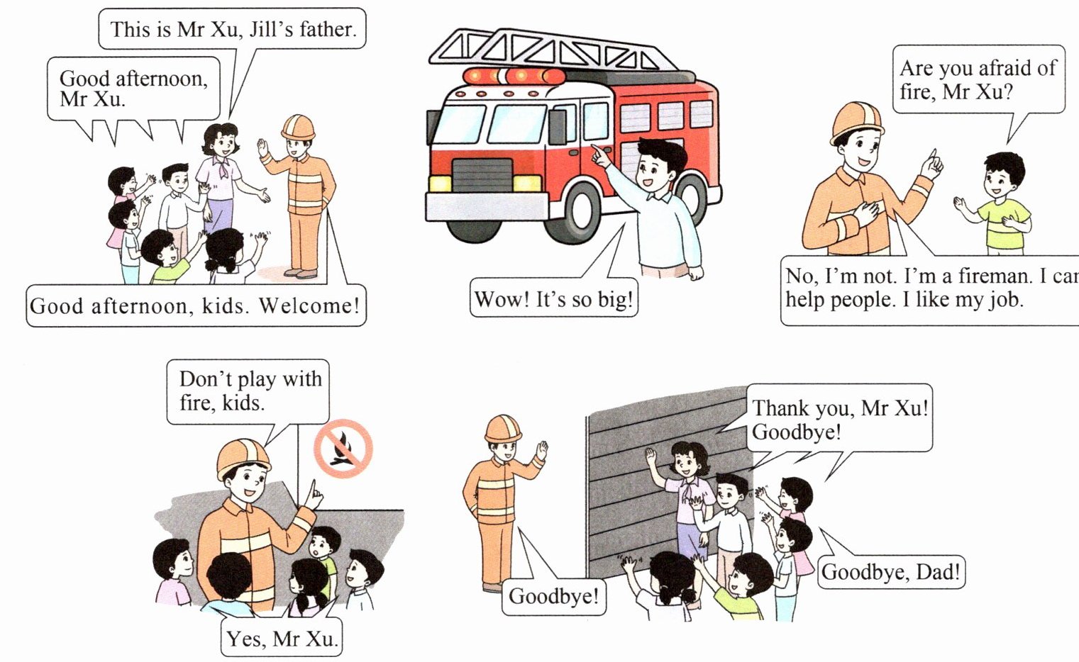 )(2) What does Mr Xu do?A. He's a teacher. B. He's Jill's father. C. He's a fireman.