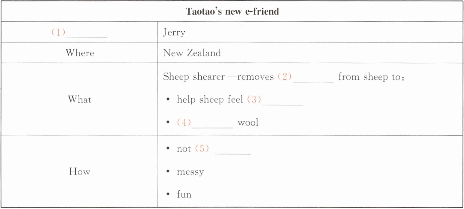 Jerry: I'm a sheep shearer. My job is to remove(去掉) wool from sheep.