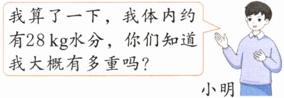 例题:根据测定,成人体内的水分约占体重的$\frac{2}{3}$,儿童体内的水分约占体重的$\frac{4}{5}$。