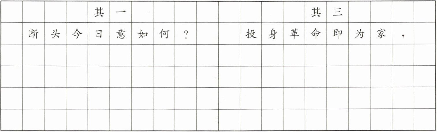 | | 断头今日意如何? | | | | | | 投身革命即为家, | | | | |
