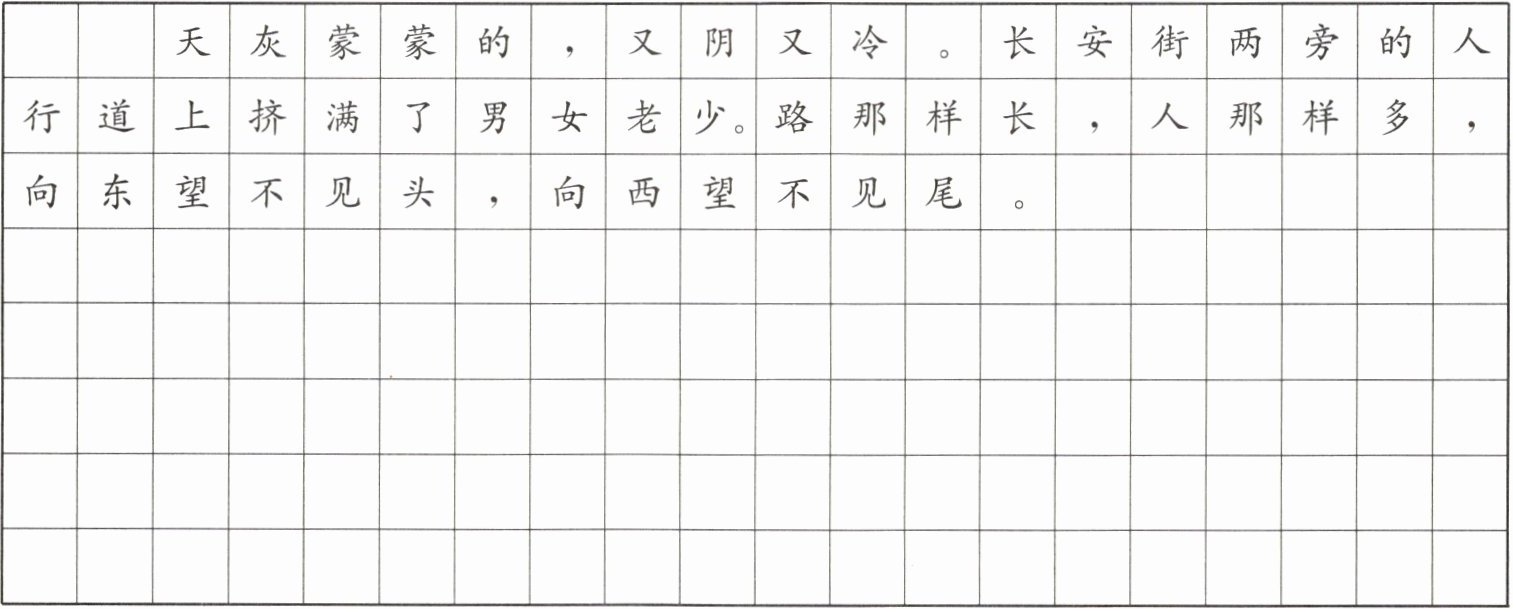 | 天 | 灰 | 蒙 | 蒙 | 的 | , | 又 | 阴 | 又 | 冷 | 。 | 长 | 安 | 街 | 两 | 旁 | 的 | 人 | |