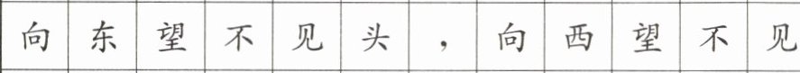 | , | 向 | 东 | 望 | 不 | 见 | 头 | , | 向 | 西 | 望 | 不 | 见 | 尾 | 。 | | | | | |