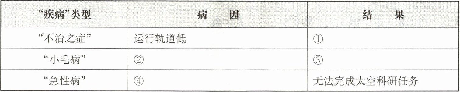 |“急性病”|④|无法完成太空科研任务|