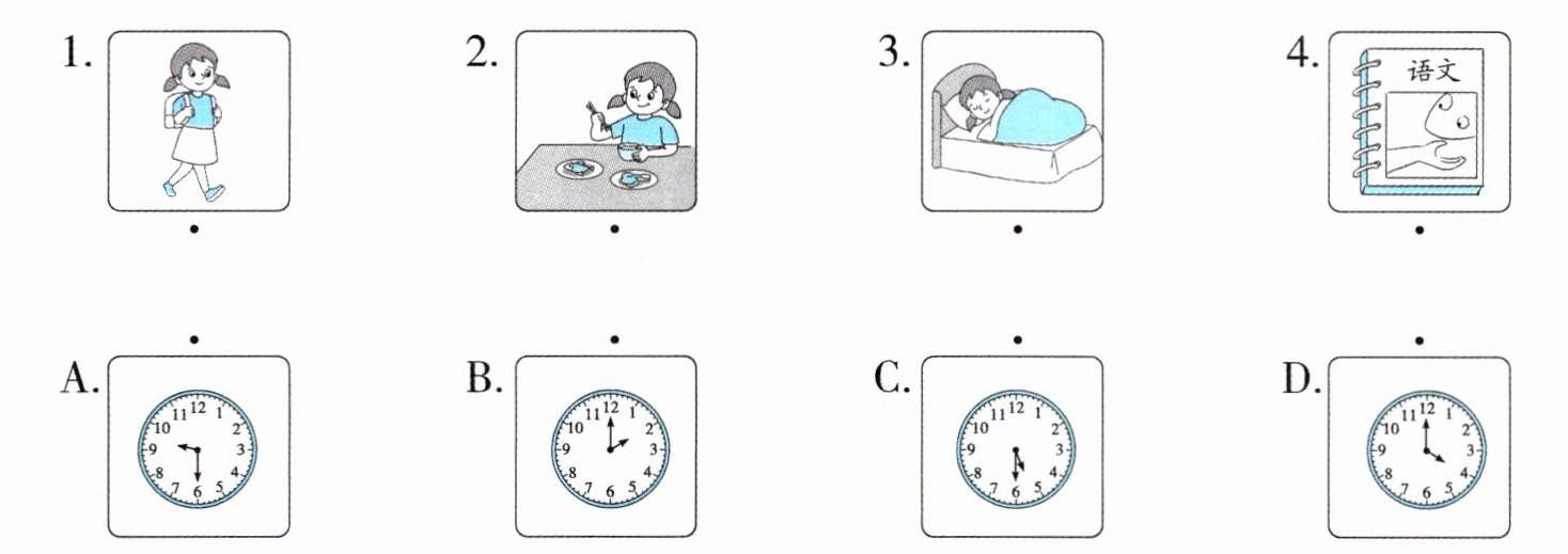 三、听录音,根据所听内容,将图片与时间连线。(听两遍)
