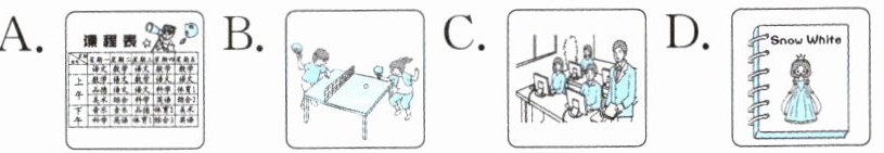 )4. —My favourite subject is English.—Me too. I like reading the English story *Snow White*.