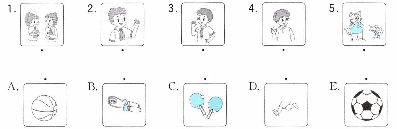 一、听录音,把人物和相应的活动图片用线连起来。(听两遍)