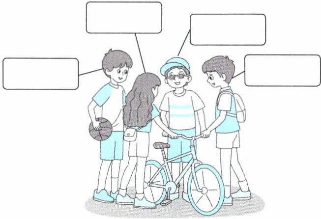 一、(2024 连云港期末)阅读对话并看图,根据描述将人名写在对应的人物旁。